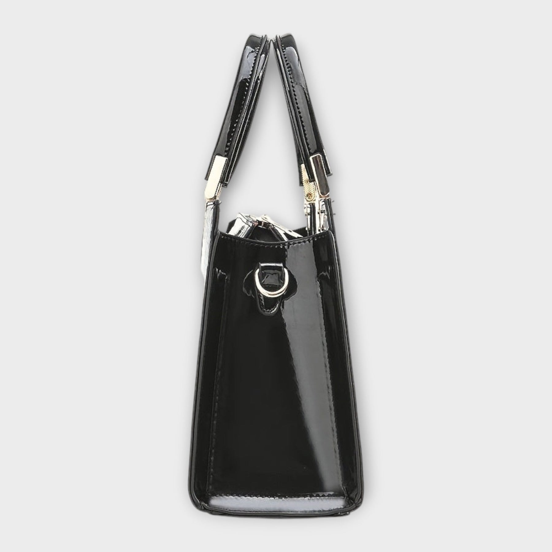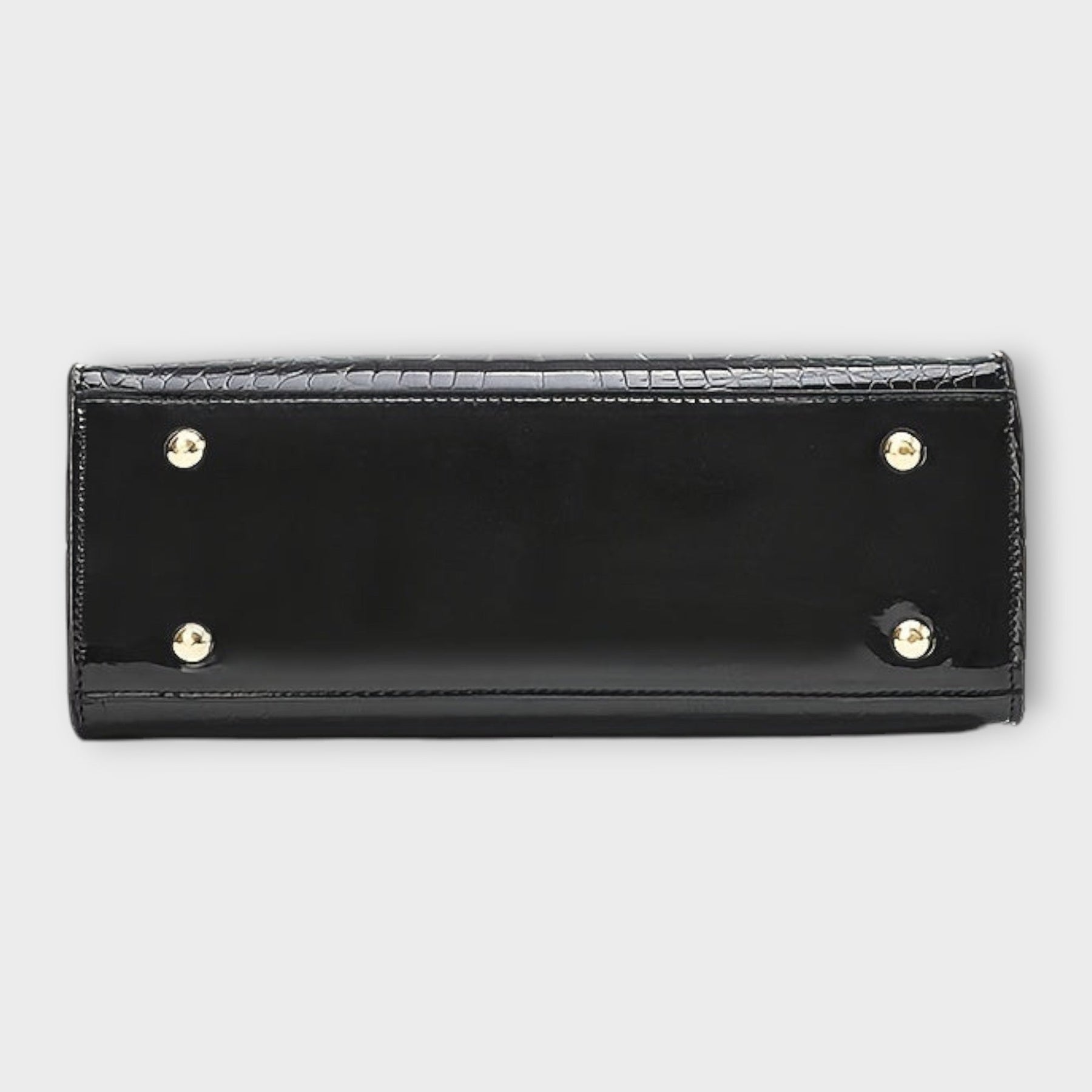 • Glansende krokodillelædermønster: Giver ethvert look et strejf af elegance og modernitet.