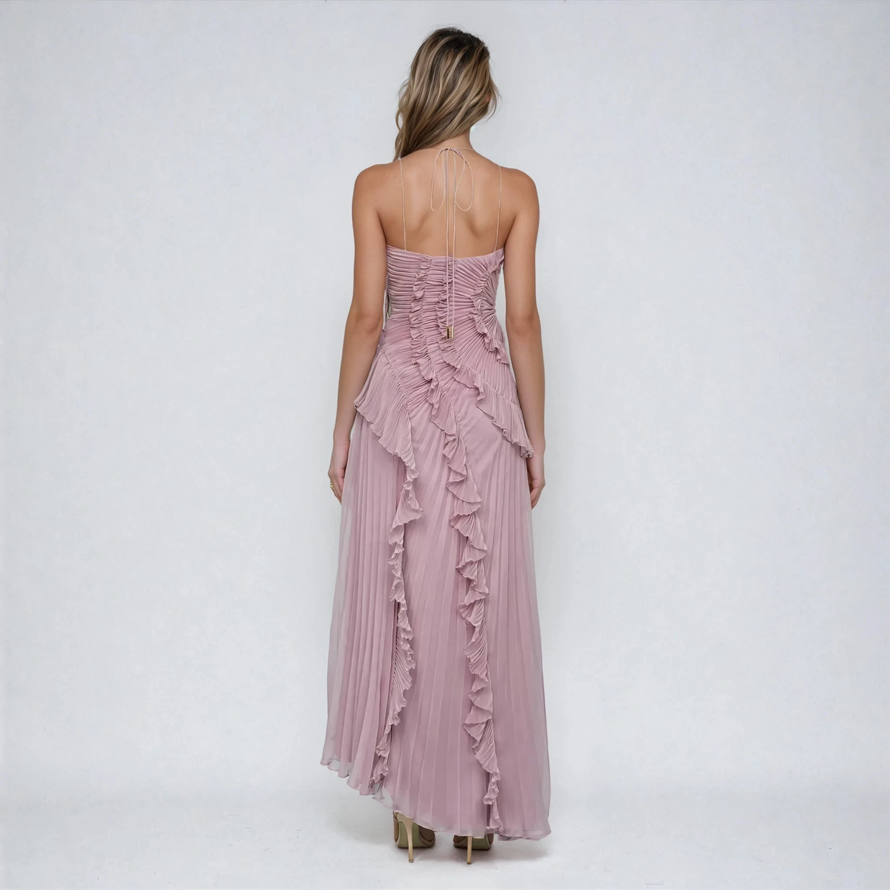 Selena™ Elegant Maxi Kjole er en betagende model, der bevæger sig yndefuldt med dig. De fine draperinger, asymmetriske bund og elegante stropper gør den ideel til både varme dage og stilfulde aftener.