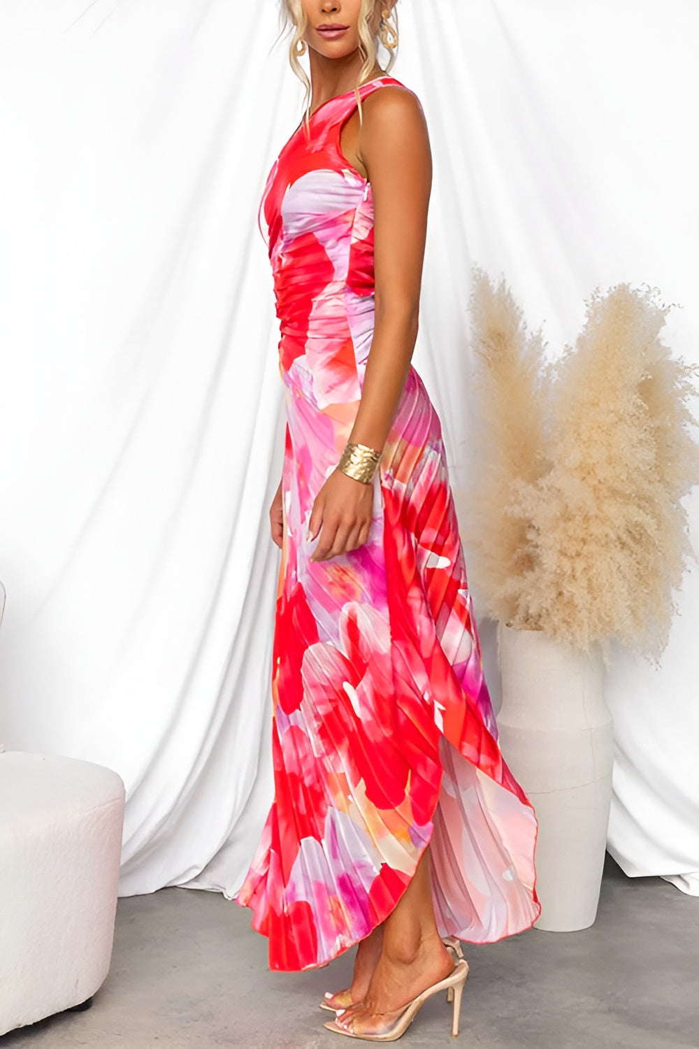 Vigga™ er kjolen, der kombinerer feminin elegance med en moderne silhuet. Den afskårne skulderlinje fremhæver dine kraveben på en smagfuld måde, samtidig med at det farverige mønster i rosa og røde nuancer straks fanger blikket. Det luftige stof i 100% polyester falder blødt og bevæger sig let med kroppen. Dine veninder vil garanteret blive misundelige.
