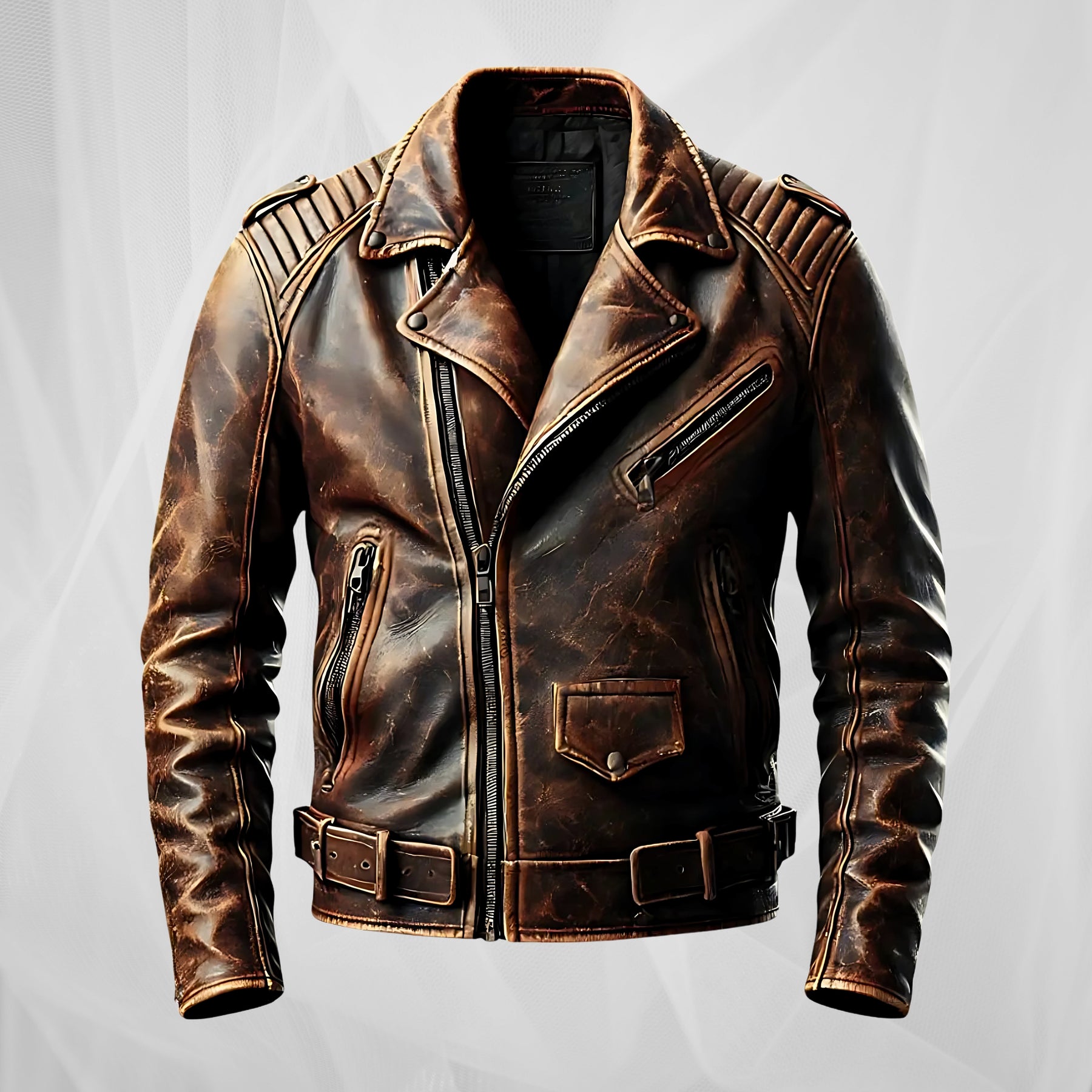 Forestil dig, hvordan du erobrer vejen eller byen i en jakke, der bærer ånden af frihed og tidløs stil. George er skabt til mænd, der værdsætter et autentisk udseende og mesterligt håndværk. Den slidte brune læder og quiltede skuldre tilføjer enestående karakter, mens det stilfulde bælte sikrer en perfekt pasform. Det er ikke bare en jakke – det er et udtryk for din individualitet og passion for klassikere.